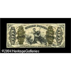 Fr. 1343 50c Third Issue Justice Very Choice New. Tight <B>Fr. 1343 50c Third Issue Justice Very Choice New.</B></I> Tight across the bottom, but Superb in every other respect. <BR><BR><B>Important notice:</B> Heritage usually auctions material at the rate of 200-250 lots per hour. On some occasions eBay Live bid software or the Internet may not be able to keep up with the pace of the auction. We recommend placing a realistic absentee bid now as insurance to avoid disappointment. Occasionally the auctioneer may eliminate or reject an eBay Live bid, and the auctioneer may also reopen a lot after the close of the eBay live bidding (usually because we missed an audience bid), and may reject your bid even if it shows you as the winning bidder. By bidding via eBay Live, you agree that Heritage may award the lot to another bidder at its sole discretion under the circumstances described above or any other reasonable circumstances. Since eBay bids are not shown to us until we open the lot on the floor, we treat those bids just like floor bids. In most cases the floor responds before the eBay bid is presented to us, due to Internet lag time, so for consistency we have made it a policy that floor bids are always considered first over tie eBay live bids. Also please note that all Heritage lots purchased through eBay Live carry a 20% Buyer's Premium. Please make sure you read the Terms and Conditions before you bid. This lot is being auctioned in conjunction with a live floor auction by Heritage Galleries & Auctioneers. All final auction and invoice information will be supplied by Heritage Galleries & Auctioneers, and all other information should be considered preliminary. Lot:15449