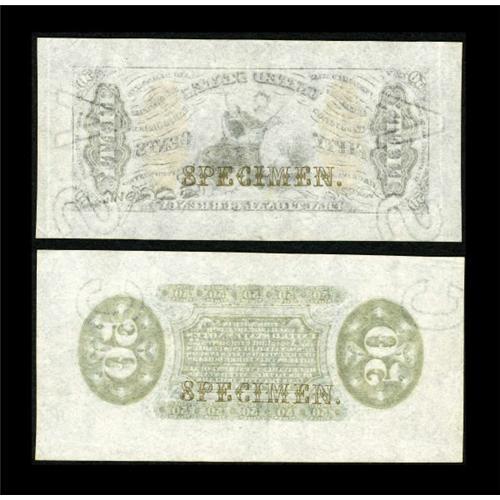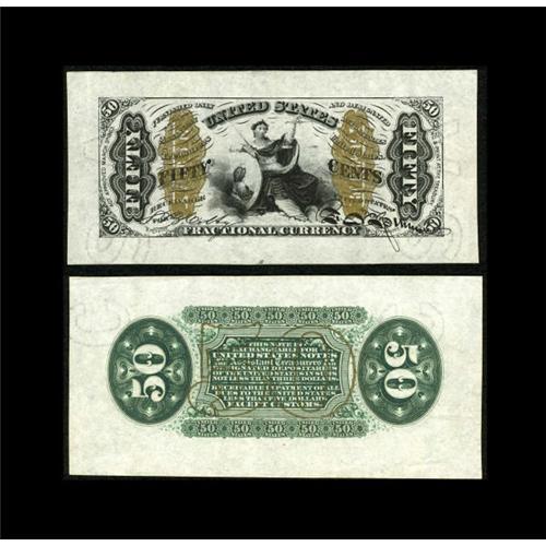 <B>Fr. 1343/58SP 50c Third Issue Wide Margin Pair Justice.</B></I> The <B>XF-About New </B></I>plate number 16 face has a fold in each of the left and right margins while the back grades <B>Choice About New </B></I>with just a tiny amount of handling. The back is also slightly wider than the face. Both of these are printed on the famed "CSA" watermark paper.<BR><BR><b>Shipping:</b> Coins & Currency (<a target="_blank" href="http://www.heritageauctions.com/common/shipping.php">view shipping information</a>)
