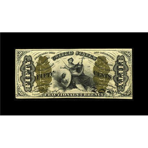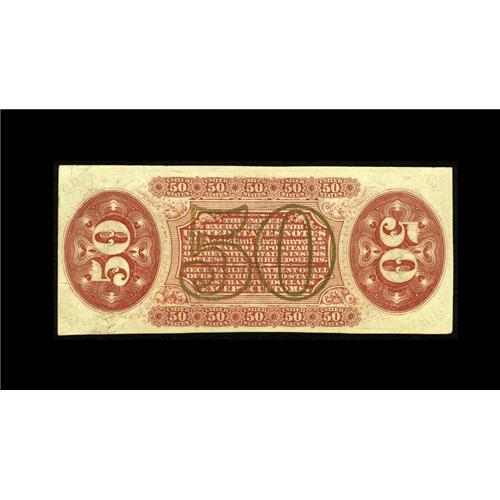 <B>Fr. 1346 50c Third Issue Justice Choice New.</B></I> This embossed note has a bold bronze overprint.
