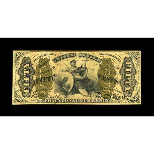 <B>Fr. 1346 50c Third Issue Justice New.</B></I> Light corner handling and uniform toning are found on this extremely well embossed Red back Justice note.<BR><BR><b>Shipping:</b> Coins & Currency (<a target="_blank" href="http://www.heritageauctions.com/common/shipping.php">view shipping information</a>)