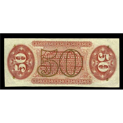 <B>Fr. 1347 50¢ Third Issue Justice Gem New.</B></I> Incredible margins for any Justice and one of the flashiest, brightest Red Backs we've seen in quite some time. This beauty also has every bit of its deep, original embossing and blazing bright bronze. Notes like this are finally beginning to come into their own, as collectors realize their true rarity. A piece that would be very difficult to replace at any number.