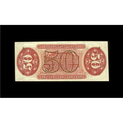 <B>Fr. 1347 50c Third Issue Justice Superb Gem New.</B></I> This beauty has blazing bright bronze, deep original embossing, fully bright paper and inks, and incredible margins for the issue. We've handled most of the finest Fractional collections ever formed and have seen scant few Red Back Justices that compare with this beauty for sheer technical quality and eye appeal.<BR><BR><b>Shipping:</b> Coin/Currency (<a target="_blank" href="http://www.heritageauctions.com/common/shipping.php">view shipping information</a>)