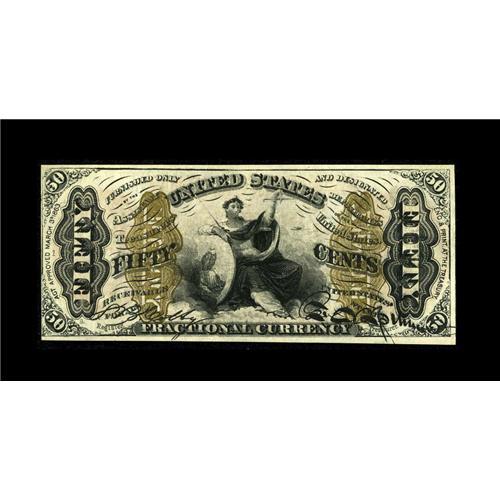 <B>Fr. 1348 50c Third Issue Justice Choice New.</B></I> This is a lovely example of this very scarce "1" and "a" variety. The embossing is deep, the inking sharp and the margins more than adequate, but for a bit of tightness at left. Problem-free and quite desirable in this state of preservation, we would not be surprised to see a realization in the area of...<BR><BR><b>Shipping:</b> Coin/Currency (<a target="_blank" href="http://www.heritageauctions.com/common/shipping.php">view shipping information</a>)