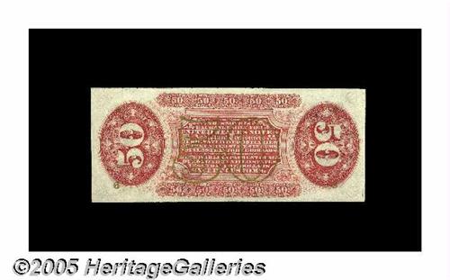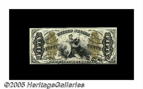 <B>Fr. 1348 Milton 3R50.5a 50¢ Third Issue Justice Superb Gem New.</B></I> An unbelievably fresh and flashy example of this rare number. The note has all its original embossing, reflective bright bronze, sharp print quality and tremendous eye appeal. Only about 20 examples of this number are known, and very few if any are the equal of this fresh, perfect piece. Neither the Liechty, Gengerke nor the Friedberg Collections had a Fr. 1348 to equal this note.