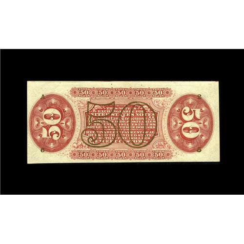 <B>Fr. 1350 50c Third Issue Justice Very Choice New.</B></I> Embossing, nice color, and dark bronze are merits of this Justice that has two margins along the frame line. This note was formerly lot 2146 in the September 1981 auction of the Rocky Rockholt Collection.
