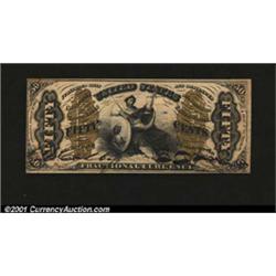 Fr. 1355 50¢ Third Issue Justice About New.<p>Well margined with good paper originality, but there is a corner fold and two ink erosion holes at the Spinner signature. Important notice: We expect to be auctioning lots at the rate of 200-250 per hour. Sometimes eBay Premier live bid software cannot keep up with that pace, so we strongly recommend that you place a realistic proxy bid now as insurance to avoid disappointment. Also please note that all Heritage/CAA lots purchased through eBay Premier carry a 20% Buyer's Premium.