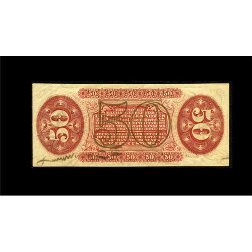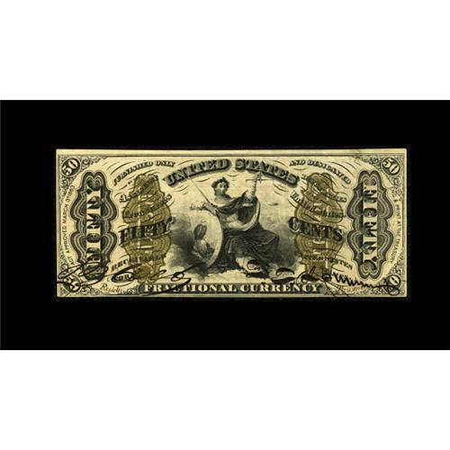 <B>Fr. 1355 50c Third Issue Justice Choice About New.</B></I> A couple of handling folds are seen at upper right on this well signed and deeply inked Justice.<BR><BR><b>Shipping:</b> Coins & Currency (<a target="_blank" href="http://www.heritageauctions.com/common/shipping.php">view shipping information</a>)