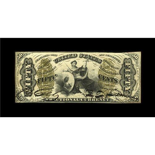 <B>Fr. 1355 50c Third Issue Justice Choice New.</B></I> This hand-signed Red Back Justice has a neat cut just outside the frame line. Both hand signatures are bold and the note lacks the ink erosion problems that are so commonly found on this number.<BR><BR><b>Shipping:</b> Coin/Currency (<a target="_blank" href="http://www.heritageauctions.com/common/shipping.php">view shipping information</a>)