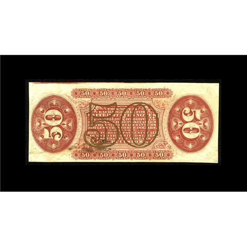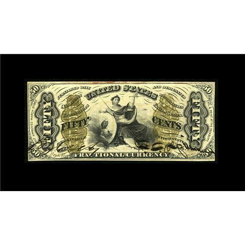<B>Fr. 1355 50c Third Issue Justice Choice New.</B></I> This hand-signed Red Back Justice comes quite close to the full Gem grade. The bronze is bright, both hand signatures are bold, and the note lacks the ink-erosion problems that are so commonly found on this number.