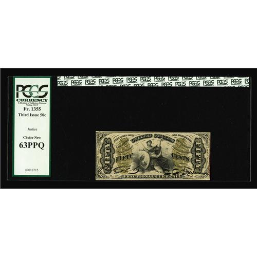 Fr. 1355 50c Third Issue Justice PCGS Choice New 63PPQ. Fr. 1355 50c Third Issue Justice PCGS Choice