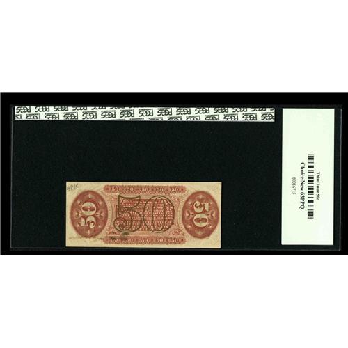 <B>Fr. 1355 50c Third Issue Justice PCGS Choice New 63PPQ.</B></I> This note has adequate margins along with strong signatures. Quite a pleasing example.