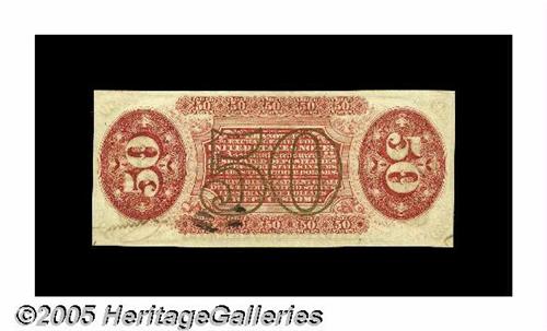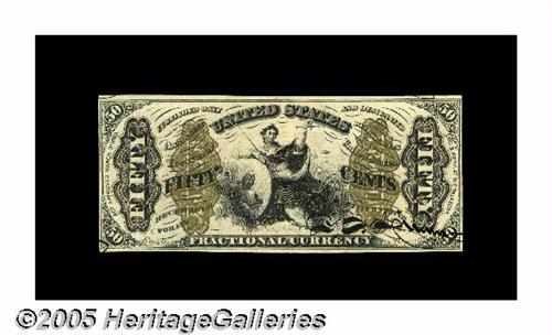 <B>Fr. 1355 Milton 3R50.1b 50¢ Third Issue Justice Gem New.</B></I> This is the very rare variety with the Spinner autograph only. We know of only three examples of this note, this being by far the finest. The bronze is blazing bright, the centering is ideal and the margins, for a hand-signed Justice type, are spectacular. The note also has all of its deep, original embossing. Vastly superior to the example sold by Stack's last May which realized over $3,000.