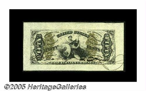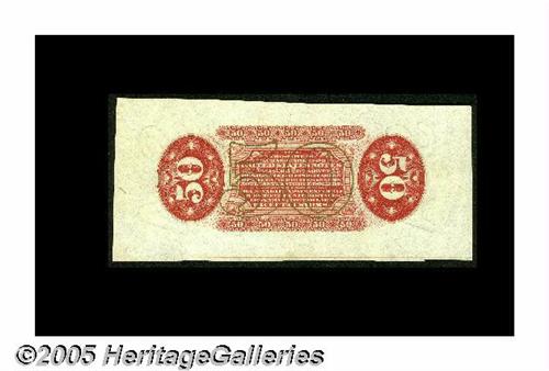 <B>Fr. 1355SP 50¢ Third Issue Wide Margin Pair About New.</B></I> Milton 3P50F.1a, 3P50R.1. The beautifully colored Red Back has two corner folds but is most unusually wide left and right. The hand-signed Justice face is lightly aged, with one very small stain and a tiny corner tip fold.