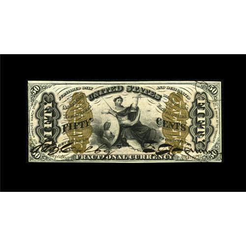 <B>Fr. 1356 50c Third Issue Justice Choice New.</B></I> The margins are a touch tight all around on this well embossed autographed Justice.<BR><BR><b>Shipping:</b> Coins & Currency (<a target="_blank" href="http://www.heritageauctions.com/common/shipping.php">view shipping information</a>)