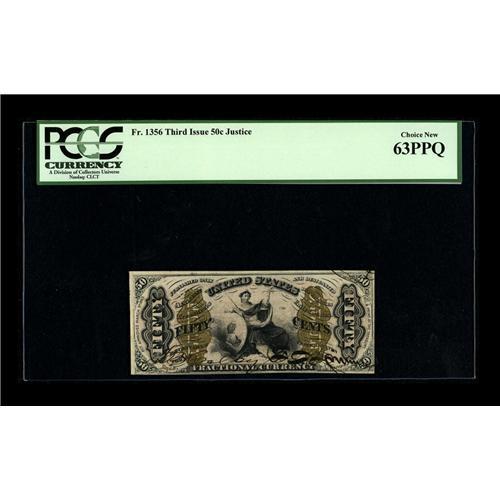 Fr. 1356 50c Third Issue Justice PCGS Choice New 63PPQ.