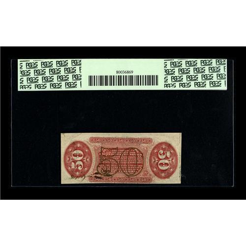 <B>Fr. 1356 50c Third Issue Justice PCGS Choice New 63PPQ.</B></I> A handsome hand-signed Red Back Justice that certainly seems to have earned its 63 grade. Unmolested surfaces are plainly visible beneath the holder.<BR><I>From The Bill and Kathy Stella Currency Collection</B></I><BR><BR><b>Shipping:</b> Coin/Currency (<a target="_blank" href="http://www.heritageauctions.com/common/shipping.php">view shipping information</a>)