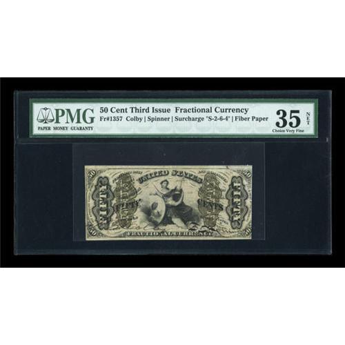 <B>Fr. 1357 50c Third Issue Justice PMG Choice Very Fine 35 Net.</B></I> This hand-signed Fiber Paper Justice exhibits a tear repair as pointed out by PMG.<BR><BR><b>Shipping:</b> Coins & Currency (<a target="_blank" href="http://www.heritageauctions.com/common/shipping.php">view shipping information</a>)