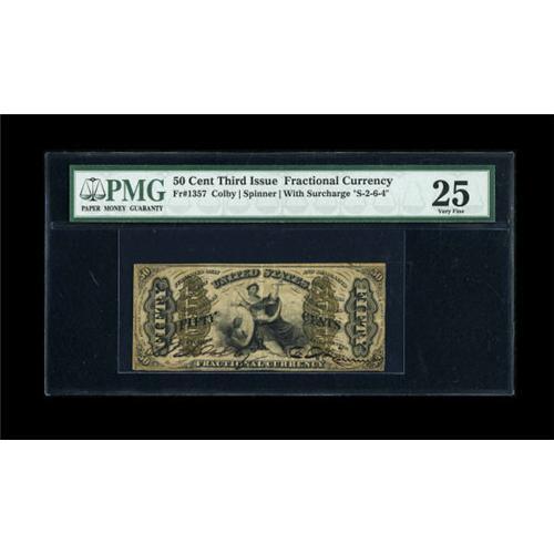 <B>Fr. 1357 50c Third Issue Justice PMG Very Fine 25.</B></I> A still intact example of the tougher fiber paper issue that has survived well despite its time in commerce.<BR><BR><b>Shipping:</b> Coins & Currency (<a target="_blank" href="http://www.heritageauctions.com/common/shipping.php">view shipping information</a>)