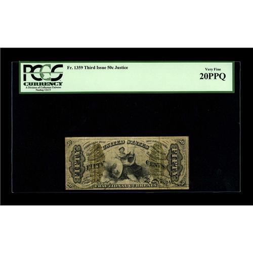 Fr. 1359 50c Third Issue Justice PCGS Very Fine 20PPQ.