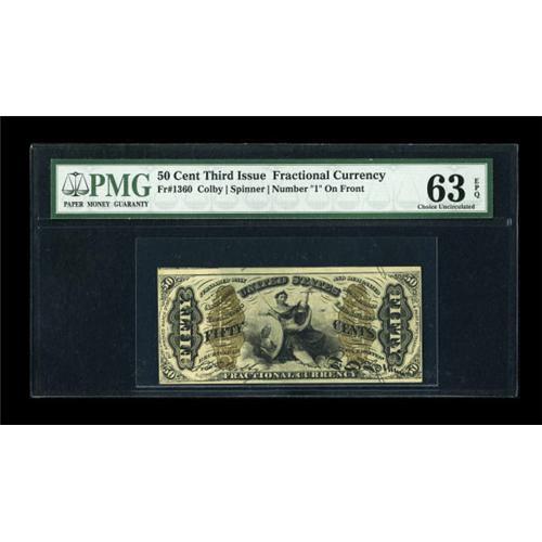 <B>Fr. 1360 50c Third Issue Justice PMG Choice Uncirculated 63 EPQ.</B></I> The color remains bright on this well embossed note.<BR><BR><b>Shipping:</b> Coins & Currency (<a target="_blank" href="http://www.heritageauctions.com/common/shipping.php">view shipping information</a>)
