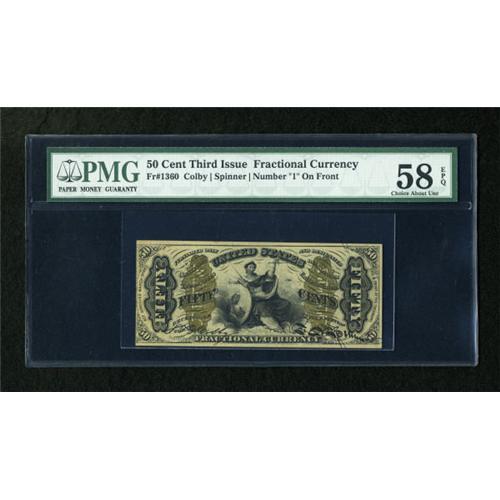 <B>Fr. 1360 50c Third Issue Justice PMG Choice About Unc 58 EPQ.</B></I> This is a nicely embossed Justice with plenty of eye appeal and bright color.<BR><BR><b>Shipping:</b> Coins & Currency (<a target="_blank" href="http://www.heritageauctions.com/common/shipping.php">view shipping information</a>)