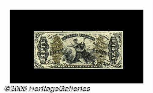 <B>Fr. 1360 Milton 3R50.13b 50¢ Third Issue Justice Very Choice New.</B></I> Three beautiful margins, but tight at the left. The bronzing, original embossing and print quality, as well as the ink and paper colors, are terrific.