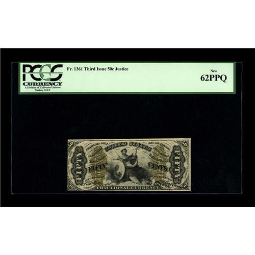 Fr. 1361 50c Third Issue Justice PCGS New 62PPQ. This n