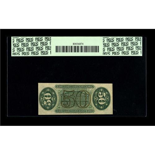 <B>Fr. 1361 50c Third Issue Justice PCGS New 62PPQ.</B></I> This note once appeared in a 1978 auction. The margins are usual for the grade but the embossing tremendous. This is a clearly an original and unmolested example.<BR><I>From The Bill and Kathy Stella Currency Collection</B></I><BR><BR><b>Shipping:</b> Coin/Currency (<a target="_blank" href="http://www.heritageauctions.com/common/shipping.php">view shipping information</a>)