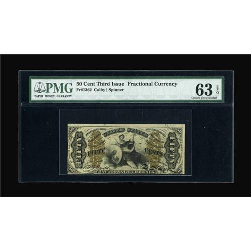 <B>Fr. 1362 50c Third Issue Justice PMG Choice Uncirculated 63 EPQ.</B></I> The bronze underprint is bold on this well preserved note that is restricted by two close margins.<BR><BR><b>Shipping:</b> Coins & Currency (<a target="_blank" href="http://www.heritageauctions.com/common/shipping.php">view shipping information</a>)