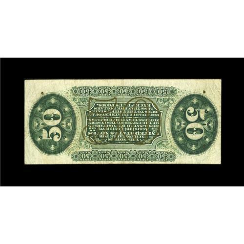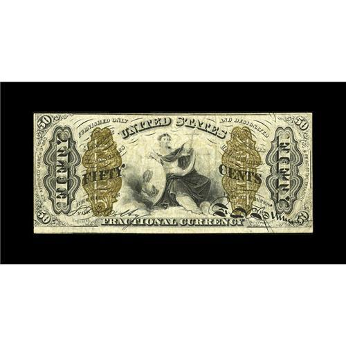 <B>Fr. 1362 Milton 3R50.10d 50¢ Third Issue Justice Inverted Back Surcharge Choice Extremely Fine.</B></I> This group of Justices (Fr. 1362-1365) is very rare as Inverts, with only nine or so pieces traced, and only about three are Fr. 1362's. As a type, there are around 30 total Justice Inverts. This is a nice example for the specialist or the collector looking for a single invert example.<BR><BR><b>Shipping:</b> Coins & Currency (<a target="_blank" href="http://www.heritageauctions.com/common/shipping.php">view shipping information</a>)