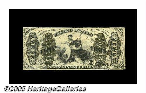 <B>Fr. 1363 50¢ Third Issue Justice Extremely Fine.</B></I> This "1" and "a" green back Justice retains its original embossing and has typical Justice centering.
