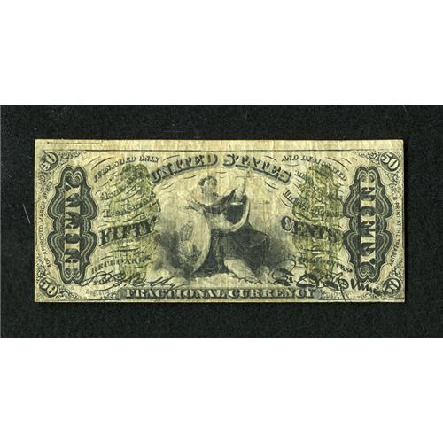 <B>Fr. 1363 50c Third Issue Justice Fine-Very Fine.</B></I> An evenly circulated example of this scarcer "1" and "a" green back Justice that has very good margins for this variety.<BR><BR><b>Shipping:</b> Coins & Currency (<a target="_blank" href="http://www.heritageauctions.com/common/shipping.php">view shipping information</a>)