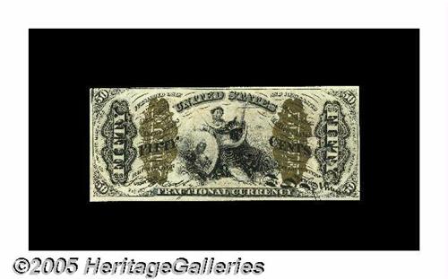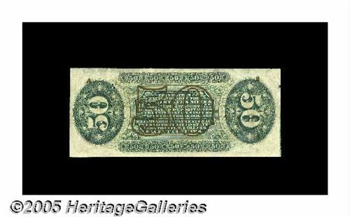 <B>Fr. 1363 Milton 3R50.10a 50¢ Third Issue Justice Choice About New.</B></I> This 1363 is the most common of the "1" and "a" Justices. This particular example has far better than average margins, although the top just touches the design at its left. Separated from Choice New by a single light center fold.