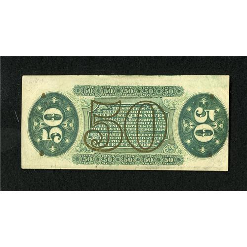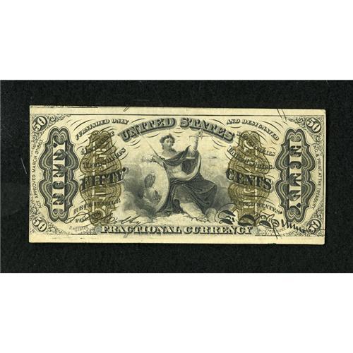 <B>Fr. 1364 50c Third Issue Justice Choice About New.</B></I> An enormously margined example of this scarcer Justice variety that has superb original embossing and a trivial nick in the wide upper border.<BR><BR><b>Shipping:</b> Coins & Currency (<a target="_blank" href="http://www.heritageauctions.com/common/shipping.php">view shipping information</a>)
