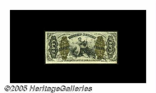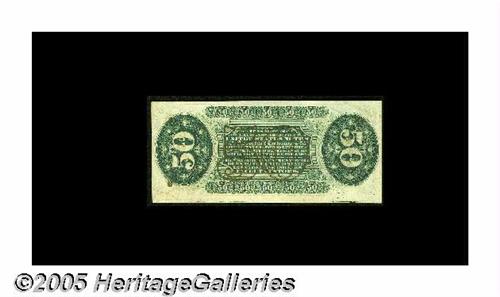 <B>Fr. 1364 Milton 3R50.10b 50¢ Third Issue Justice Choice New.</B></I> From the bottom-left corner of the sheet, and boasting three huge margins. Unfortunately, it's cut into the design at the right of the face. The back is beautifully centered, and the note has bright bronze, terrific print quality, perfect color and all its original embossing.