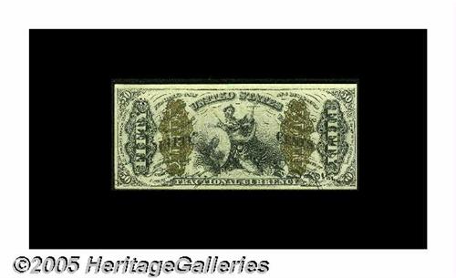 <B>Fr. 1365 Milton 3R50.10c 50¢ Third Issue Justice Gem New.</B></I> A miracle Justice with four broad margins, near-perfect centering of both sides, bright bronze, perfect colors, sharp printing and pronounced original embossing. Tom's collection has a higher percentage of well margined Justices than any other collection we've ever examined. I would not be at all surprised if this collection represented half of the truly nice Justice notes in existence.
