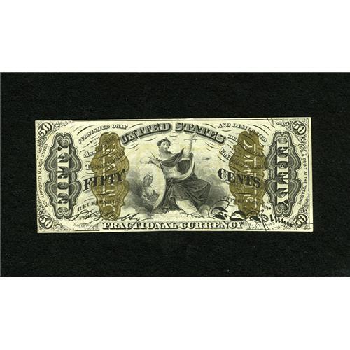 <B>Fr. 1366 50c Third Issue Justice About New.</B></I> The bronze overprint is bold on this lightly handled example.<BR><BR><b>Shipping:</b> Coins & Currency (<a target="_blank" href="http://www.heritageauctions.com/common/shipping.php">view shipping information</a>)