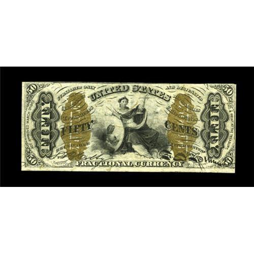 <B>Fr. 1366 50c Third Issue Justice Extremely Fine-About New.</B></I> Coaxing reveals a couple of weak folds on this note that also has a nice bronze overprint.<BR><BR><b>Shipping:</b> Coins & Currency (<a target="_blank" href="http://www.heritageauctions.com/common/shipping.php">view shipping information</a>)