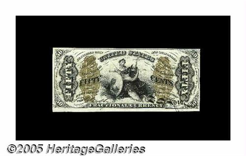 <B>Fr. 1366 Milton 3R50.11 50¢ Third Issue Justice Gem New.</B></I> One of the very nicest examples we've ever seen of this Justice type. The margins are more than ample to support the grade, and the bottom is simply huge. The colors and bronze are incredibly bright, and the note has the visual impact of a piece that had just been printed. One of the very finest of its number in existence.