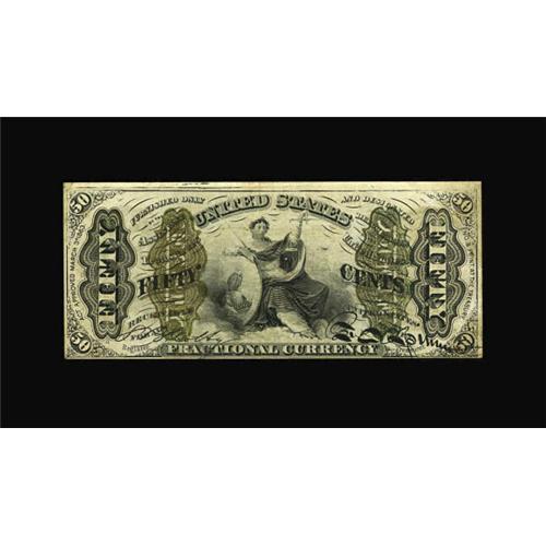 <B>Fr. 1367 50c Third Issue Justice Extremely Fine.</B></I> A new Fr. 1367 to the census and an extremely nice lightly circulated one. The bottom margin is tight, but clear of the frameline at all points, and the other margins, particularly the top, are quite large for a Justice. Both the "1" and "a" are clear and distinct, and unlike many "1" and "a" Justices, this piece is well printed all the way to the edge of the design on both sides. CAA has offered 15 Fr. 1367s over our 17 year history, but that number likely represents just five or six different notes. Fr. 1367 is one of the ten rarest regular issue Fractional notes and this fresh original piece, with good color and all its embossing in tact, will certainly slip right past the four-figure mark. <BR><BR><b>Shipping:</b> Coins & Currency (<a target="_blank" href="http://www.heritageauctions.com/common/shipping.php">view shipping information</a>)