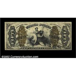 Fr. 1369 50c Third Issue Justice Choice About New. Fr. 1369 is a legitimately scarce number in all grades, and this piece, in spite of its center fold, is an outstanding example. It has remarkably large margins all around, beautiful printing quality, a perfectly centered back design and bright bronze. The note also exhibits its full embossing effect from the pressure of the plates. An exceptional note that deserves considerable bidder attention. Important notice: We expect to be auctioning lots at the rate of 200-250 per hour. Sometimes eBay Premier live bid software cannot keep up with that pace, so we strongly recommend that you place a realistic proxy bid now as insurance to avoid disappointment. Also please note that all Heritage/CAA lots purchased through eBay Premier carry a 20% Buyer's Premium. Please make sure you read the Terms and Conditions.