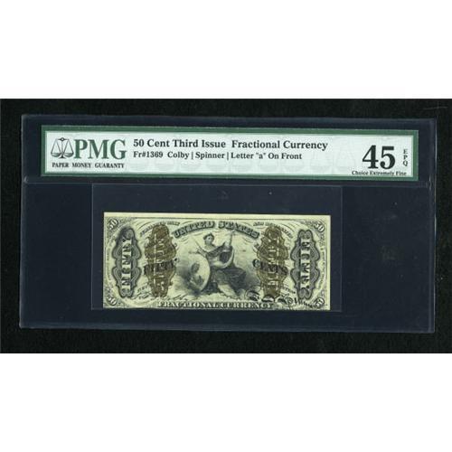 <B>Fr. 1369 50c Third Issue Justice PMG Choice Extremely Fine 45 EPQ.</B></I> This note looks choice and EPQ for the grade.<BR><BR><b>Shipping:</b> Coins & Currency (<a target="_blank" href="http://www.heritageauctions.com/common/shipping.php">view shipping information</a>)