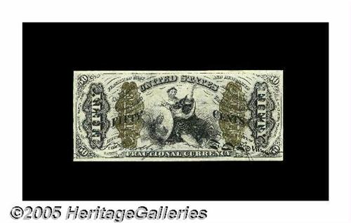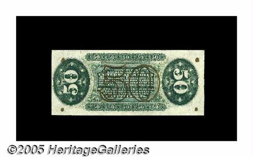 <B>Fr. 1369 Milton 3R50.11c 50¢ Third Issue Justice Choice About New.</B></I> This rare number has unbelievably good margins as well as great color and bright bronze. Unfortunately, it also has a single vertical fold, without which it would grade Gem.
