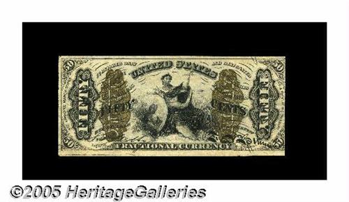 <B>Fr. 1370 50¢ Third Issue Justice Extremely Fine.</B></I> A very lightly circulated fiber paper Justice with exceptionally fresh paper surfaces. Ex-Lyman Low's January 28, 1911 Sale and bearing lot number 330 in addition to the price paid -- $1.43. The state of contemporary studies and knowledge of Fractional Currency are also reflected by the fact that the envelope carries the notation "Autograph (?)."