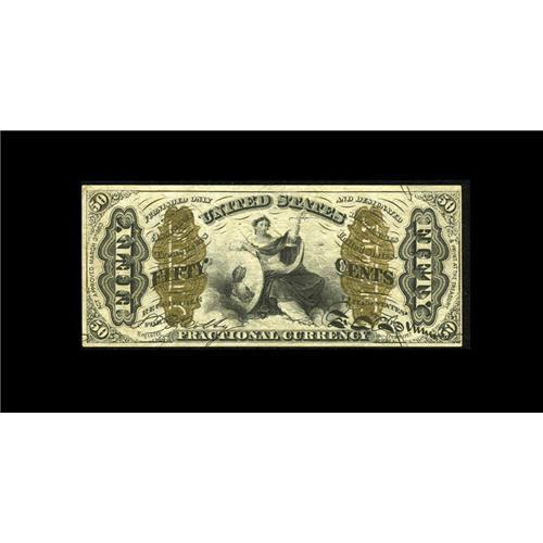 <B>Fr. 1370 50¢ Third Issue Justice Superb Gem New.</B></I> One of the finest Fiber Paper Justices that we have ever seen. It's very nicely margined all the way around, with bright bronze, bold, original embossing, ideal back centering and excellent even paper tone. A nearly impossible note to locate in this grade.