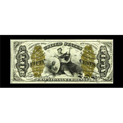 <B>Fr. 1370 50c Third Issue Justice Very Choice New.</B></I> Face plate 19 is found on this charming fiber paper note that has three wide margins and bright bronze. It was purchased by our consignor from Abe Kosoff in the 1970s.