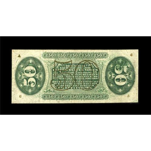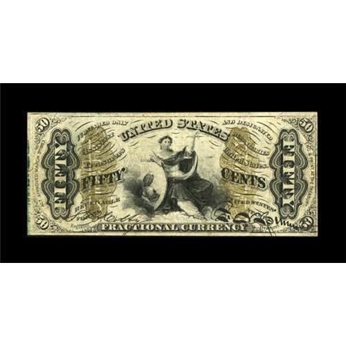 <B>Fr. 1371 50c Third Issue Justice Extremely Fine.</B></I> Last appearing in our 2005 FUN sale, where we described it as "Three very light folds away from the Gem New grade and one of the half dozen nicest Fr. 1371s in existence. The note is exceptionally well printed, beautifully bright, ideally centered on both sides and with all the eye appeal of a Gem. We've handled several technically uncirculated Fr. 1371s that have nowhere near the eye appeal or value of this lightly folded beauty. Extraordinarily underpriced on today's market, with perhaps twenty examples known in all grades combined."<BR><BR><b>Shipping:</b> Coins & Currency (<a target="_blank" href="http://www.heritageauctions.com/common/shipping.php">view shipping information</a>)