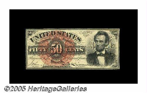 <B>Fr. 1374 50¢ Fourth Issue Lincoln Extremely Fine.</B></I> A high-grade circulated Lincoln note. Ex-Lyman Low's January 28, 1911 sale and housed in an envelope identifying it as lot 337 in that offering with the price paid -- $1.15.