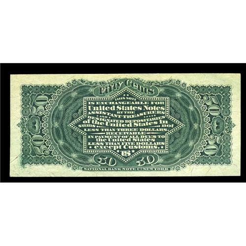 <B>Fr. 1374 50c Fourth Issue Lincoln Choice New.</B></I> This example is cut just a bit too close along the upper margin to make Gem.