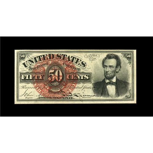 <B>Fr. 1374 50c Fourth Issue Lincoln Choice New.</B></I> The margins are better than usually encountered for the issue and the colors vivid.<BR><BR><b>Shipping:</b> Coin/Currency (<a target="_blank" href="http://www.heritageauctions.com/common/shipping.php">view shipping information</a>)
